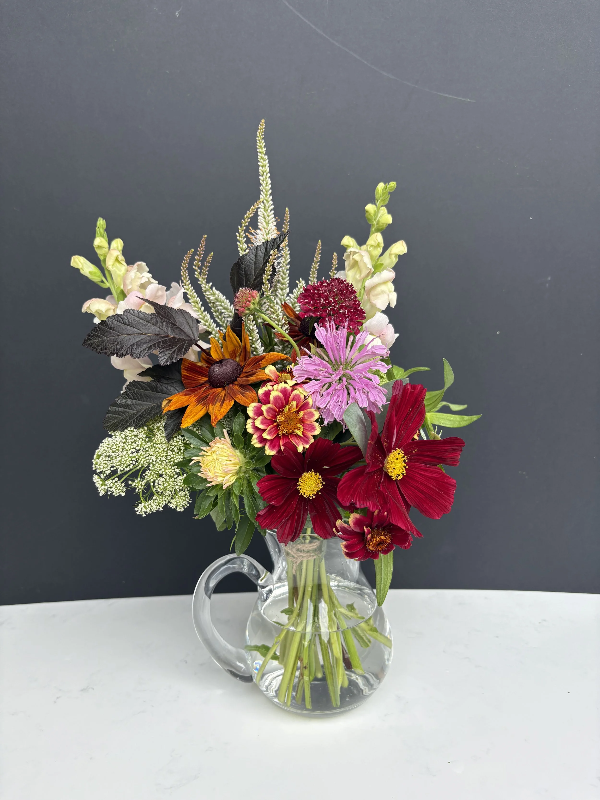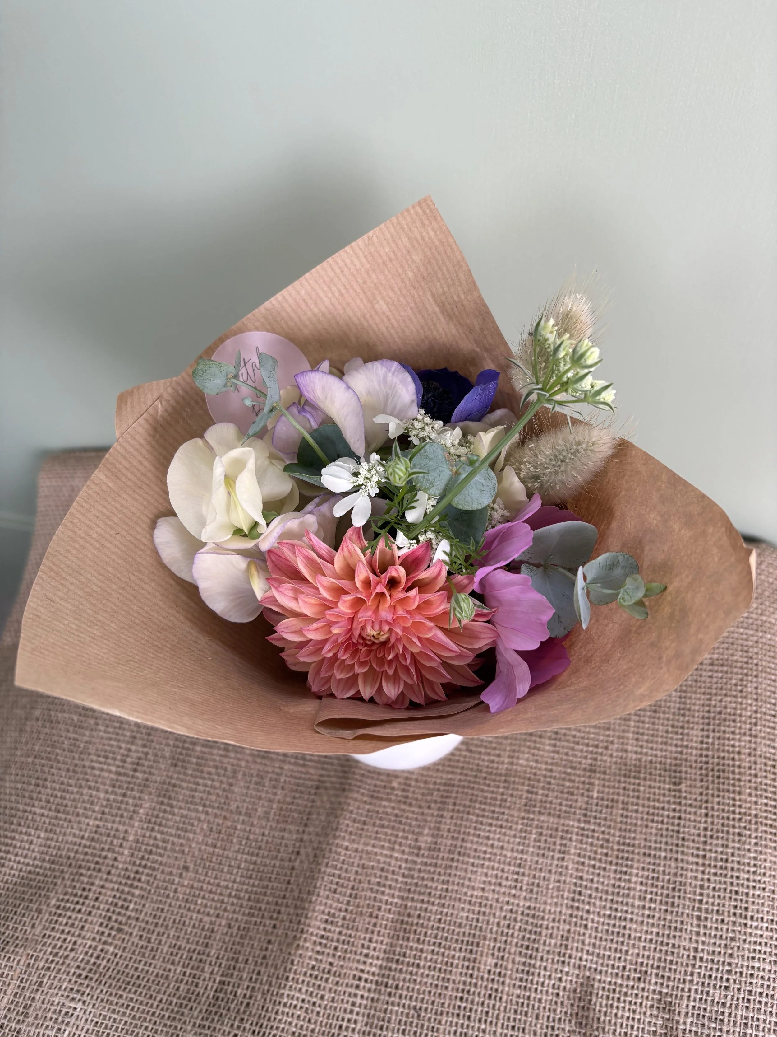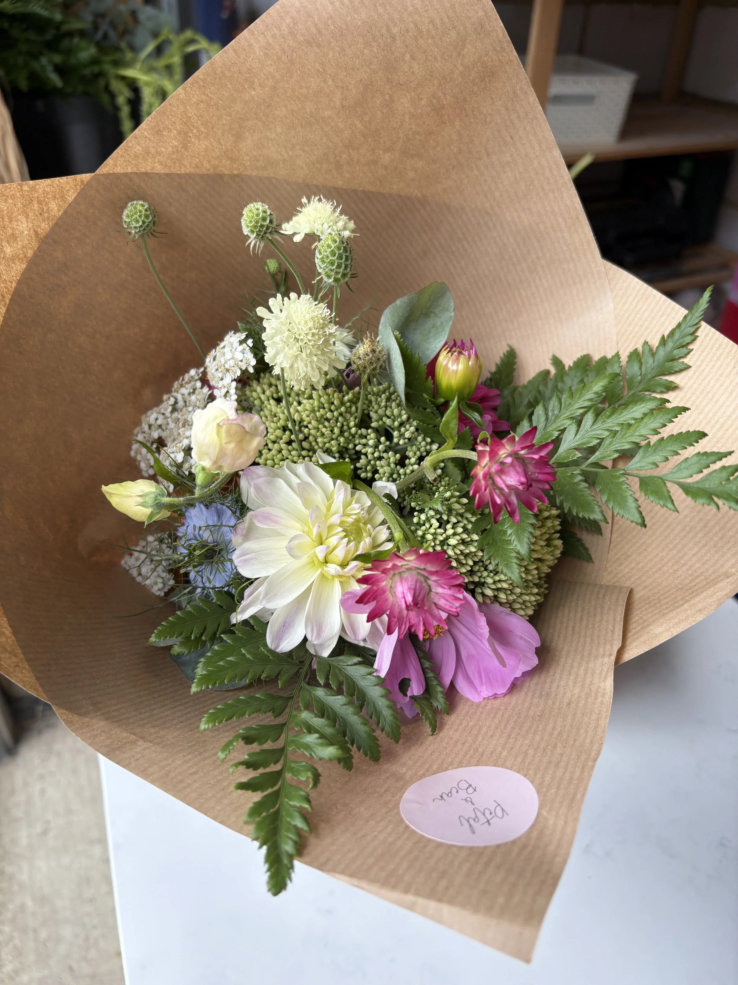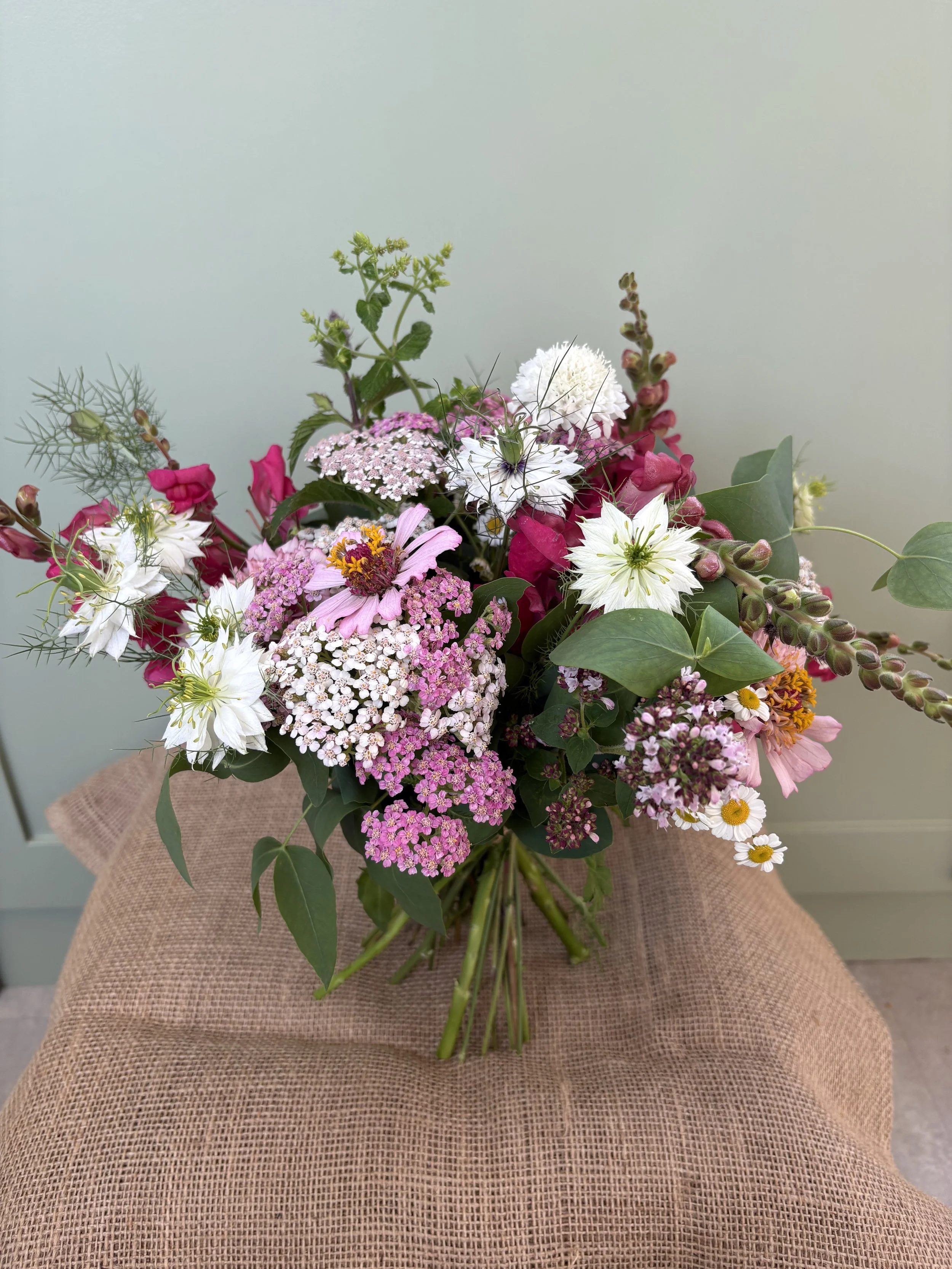 Categories: All Bouquet Arrangement All | Bouquet | Arrangement | Large bouquet £55.00 Door wreath £65.00 Medium bouquet £35.00 “Jam jar” posy £15.00 6 month subscription £180.00 Table centre £45.00 Mini bouquet £5.00